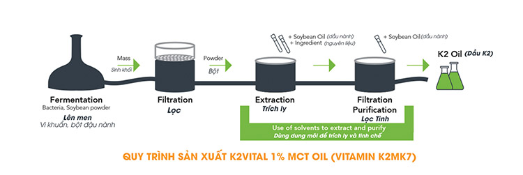 - Vitamin K2-MK7 (K2VITAL 1% MCT Oil): 3500mcg (nguyên liệu nhập khẩu từ Nauy)